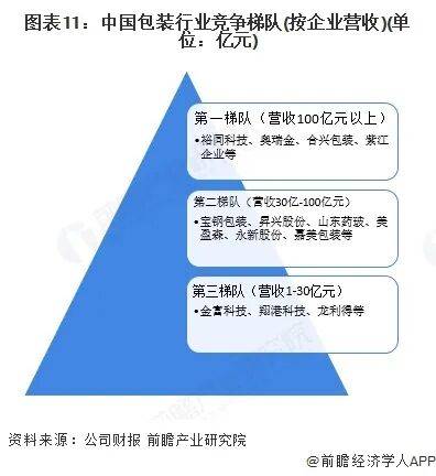 从行业主要上市企业营业收入来看,行业可主要分为三个竞争梯队:裕同科技、奥瑞金、合兴包装等上市企业营收规模均在100亿元以上,排在第一梯队;行业第二梯队主要包括宝钢包装、昇兴股份、山东药玻等企业,企业营收均在30-100亿元之间;行业第三梯队的上市企业分别为金富科技、翔港科技、龙利得等,营业收入在30亿元以下,市占率较低,企业竞争力有待提高。