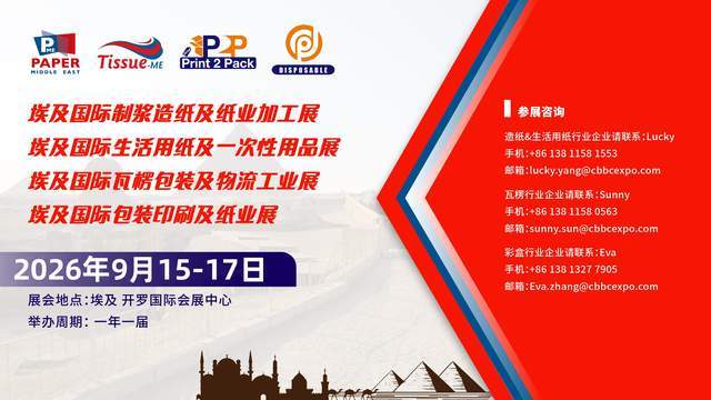 2026年9月15日至17日,第18届埃及Print 2 Pack国际包装印刷及纸业展览会将在埃及开罗国际会展中心举办,这无疑将为全球纸包装行业参与者提供一个展示创新成果、洞察市场趋势、拓展合作网络的绝佳平台,进一步推动中东非地区纸包装产业与全球产业链的深度融合。返回搜狐,查看更多